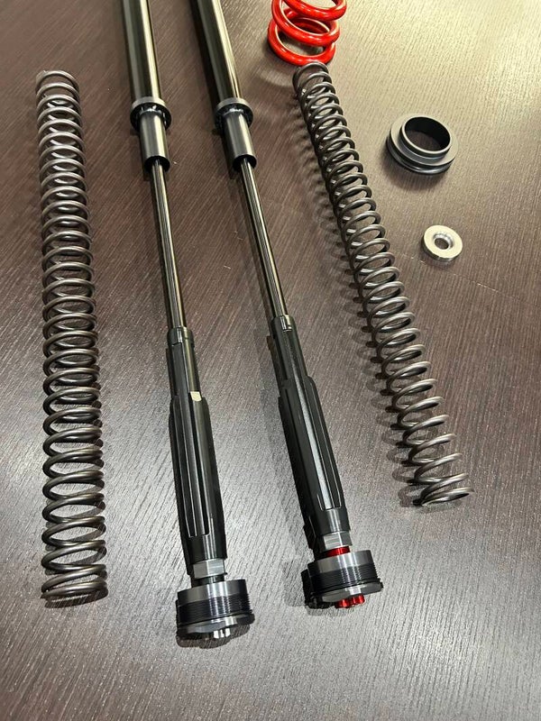Il kit comprende pompanti forcella corsa 270mm completi di molle e taratura dedicata con regolazioni di compressione ritorno e precarico esterni e facilmente raggiungibili, molla posteriore con progressione appositamente studiata per le maxi e distanziale interno 270mm .il kit ha vinto il trofeo ktm nel 2023 con Stefano Sassaro ! Si esegue anche il montaggio ! Il materiale è tutto di alta qualità e iper collaudato !